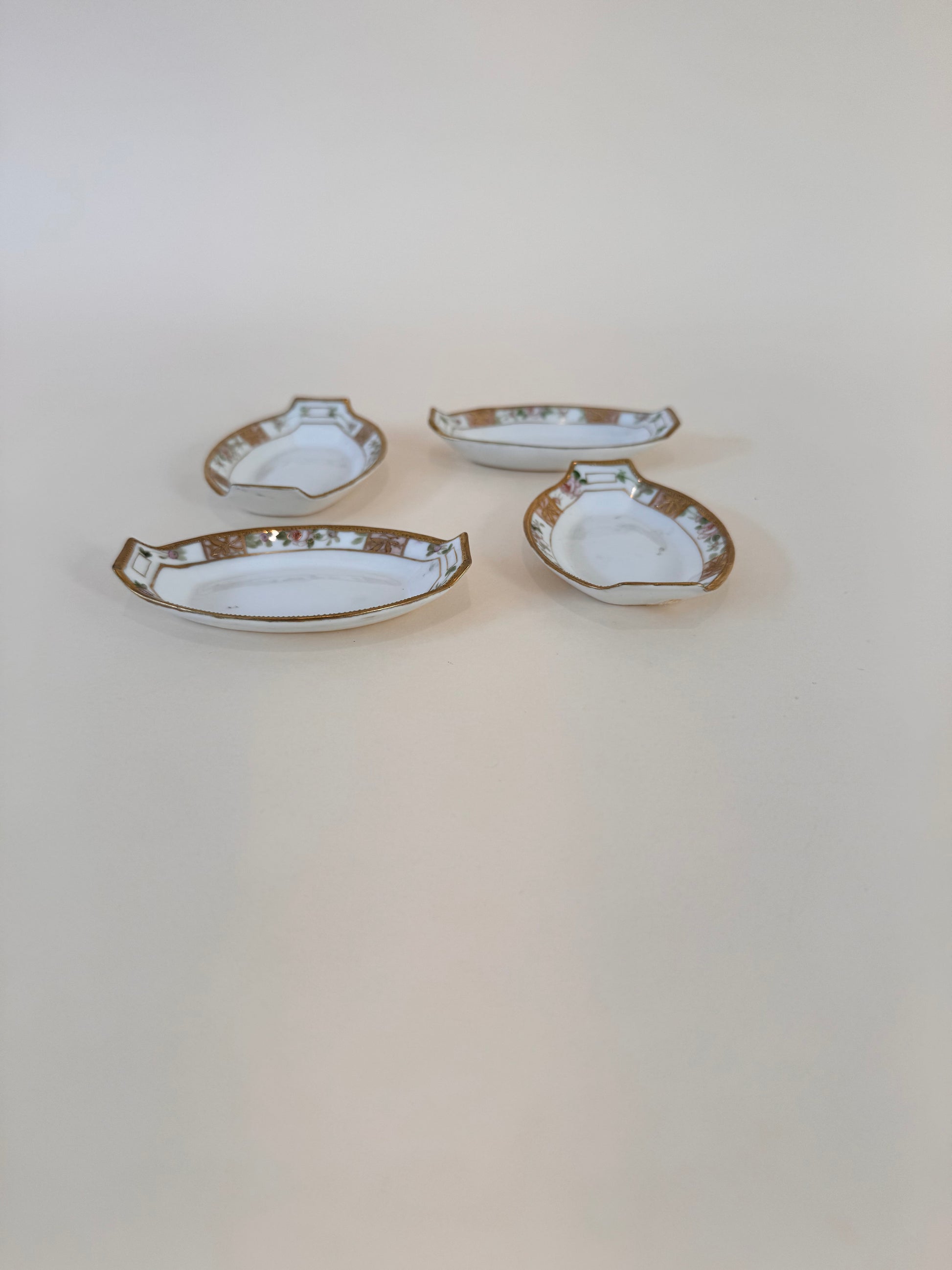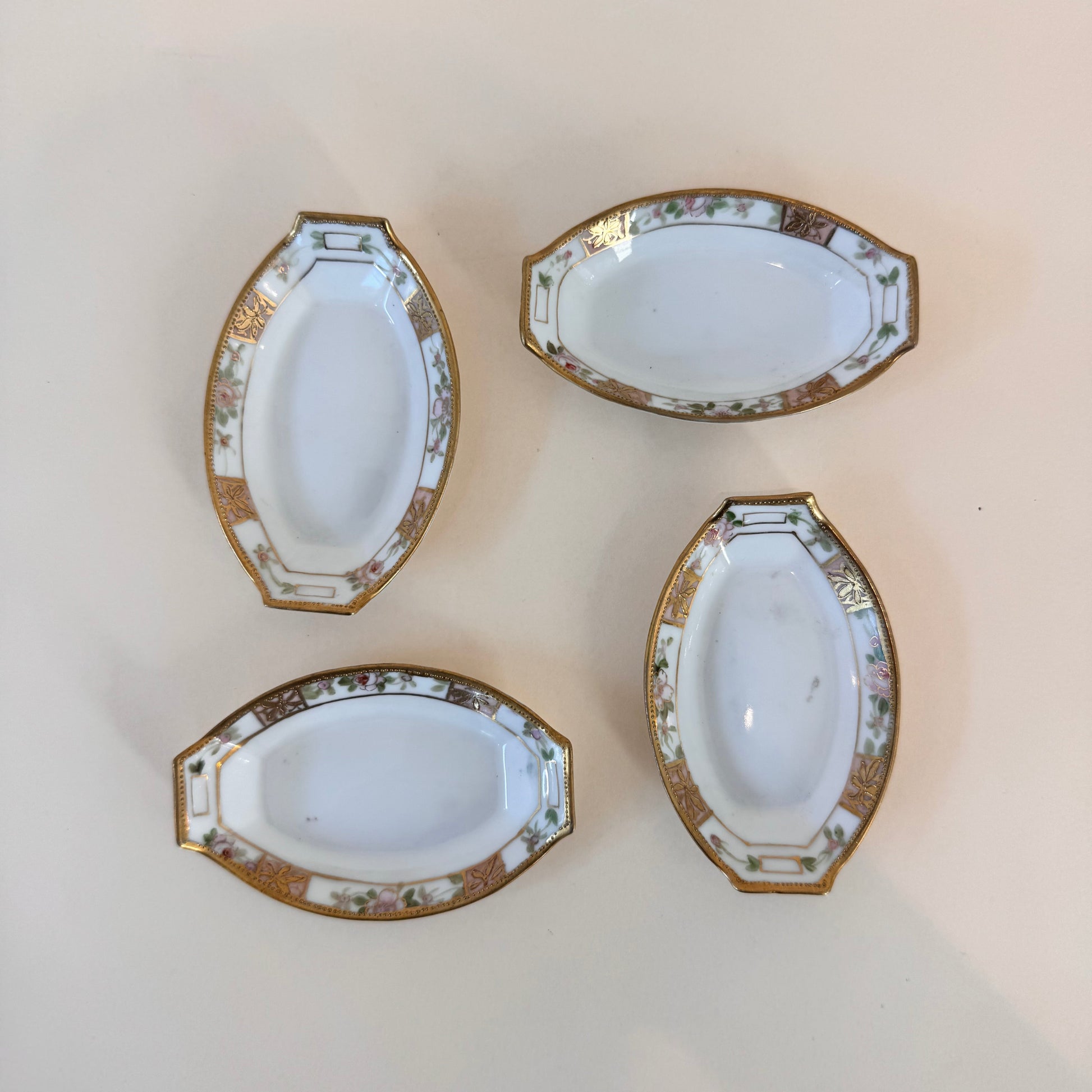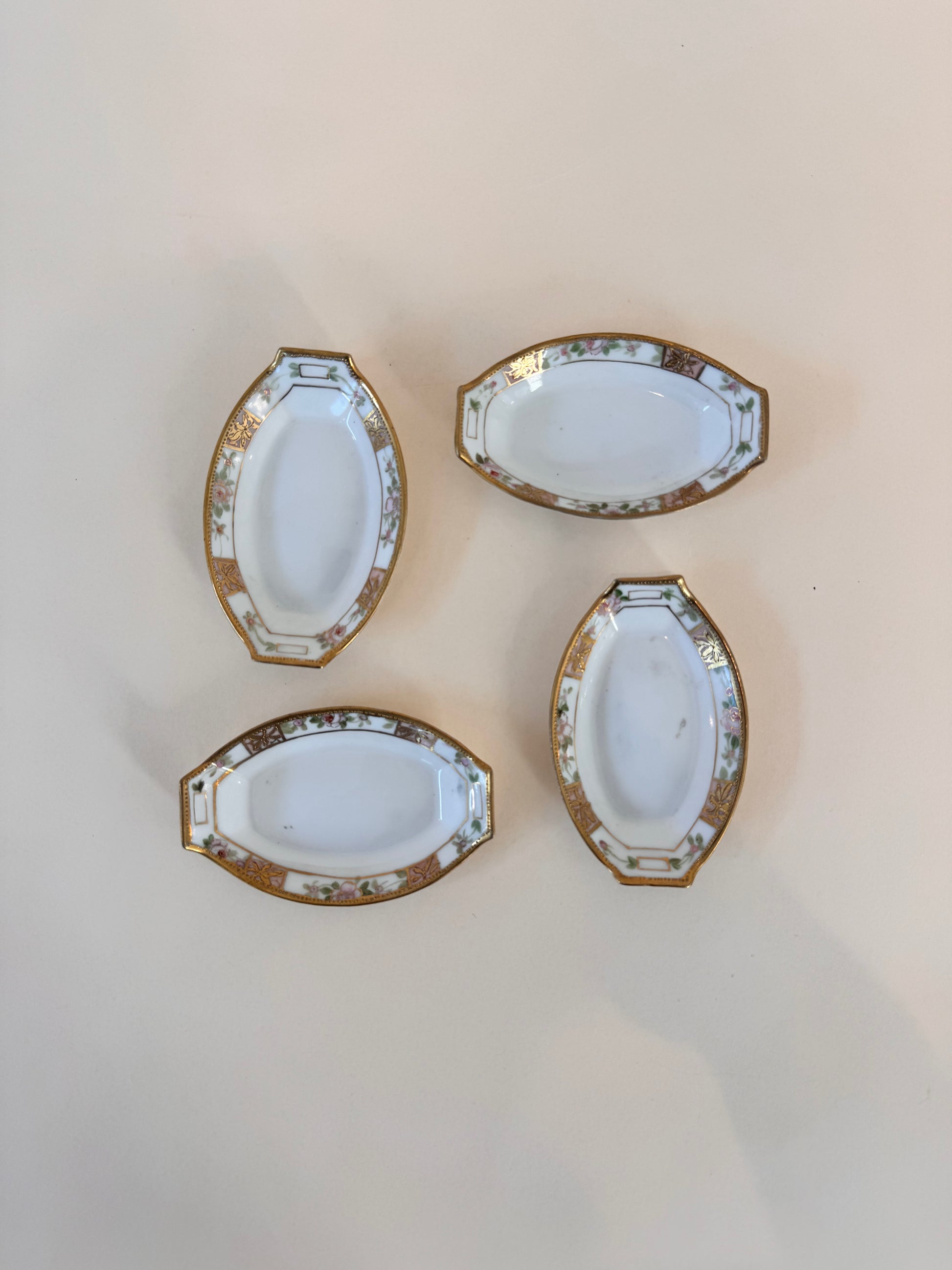Antique Nippon Hand-Painted Porcelain Salt Cellars, Set of 4 – Floral & Gold