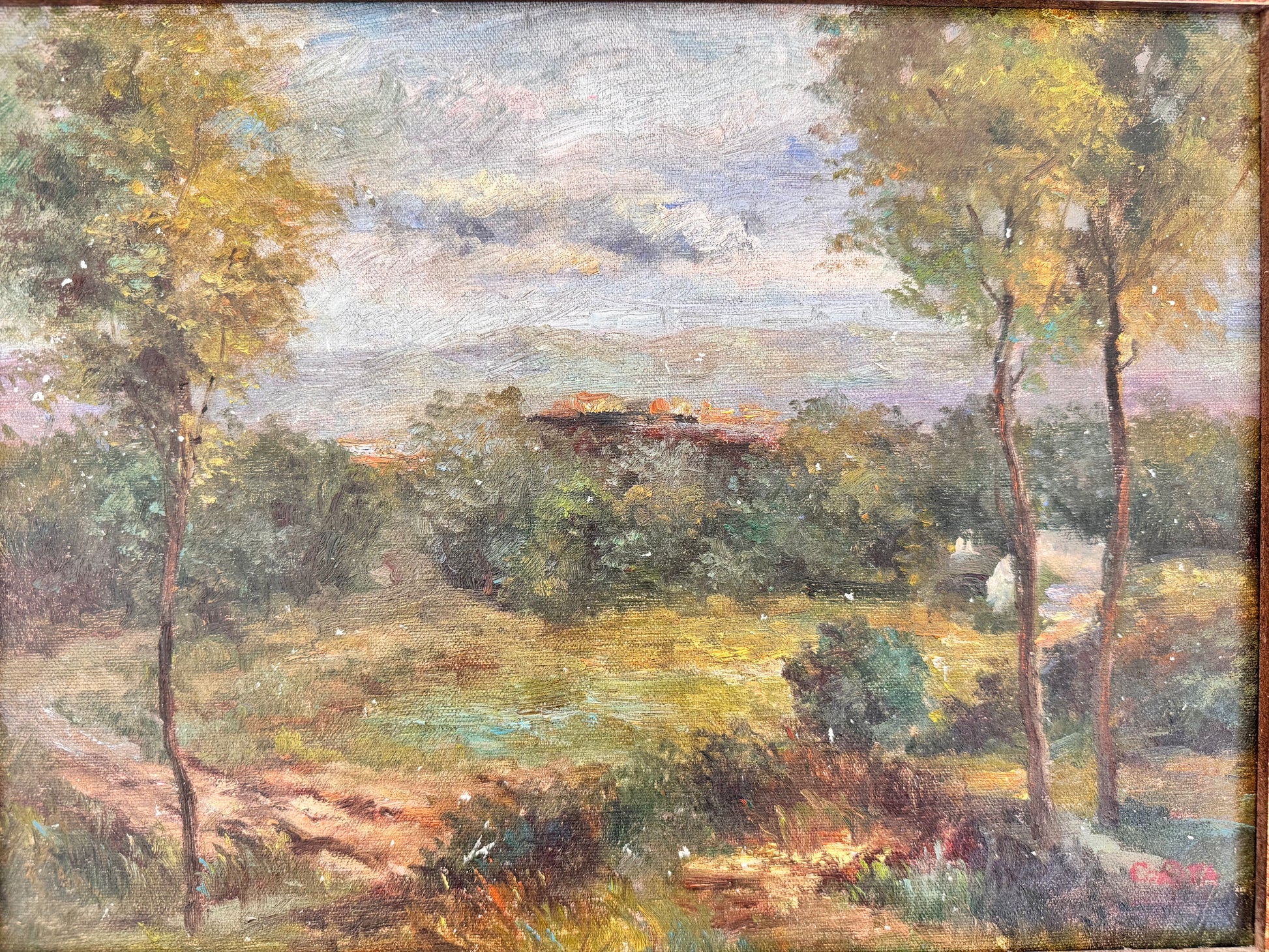 Vintage Oil Landscape in Ornate Gilt Frame – Signed C. Rita, Mid-20th Century